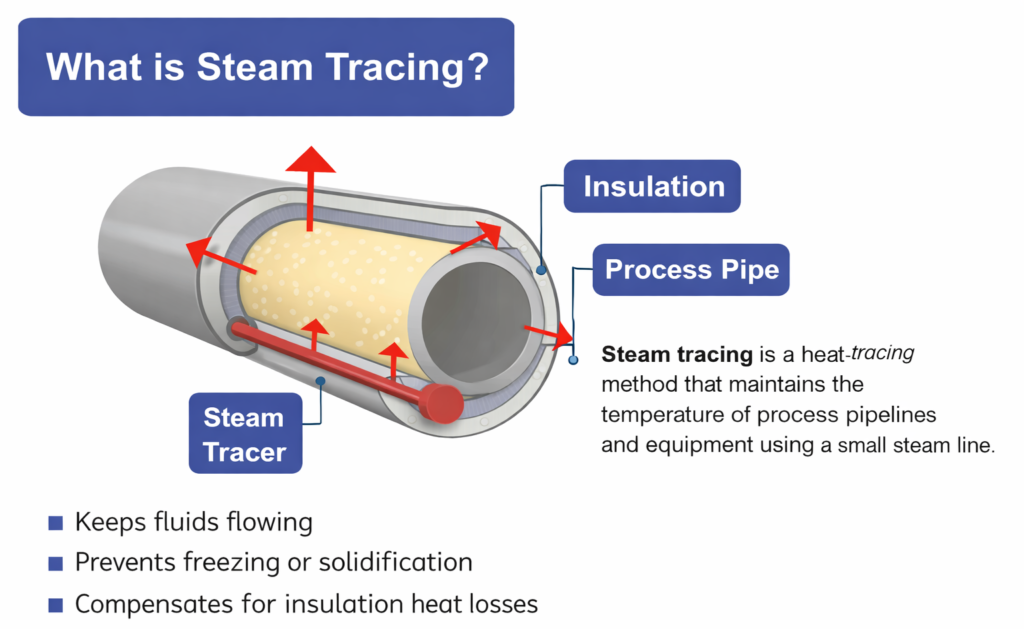 - Tracer Type Selection (Convective, Conductive, Clamp-On / Bolt-On) – Selection of appropriate tracer technology considering pipe size, process criticality, installation constraints, heat transfer efficiency, and lifecycle cost.